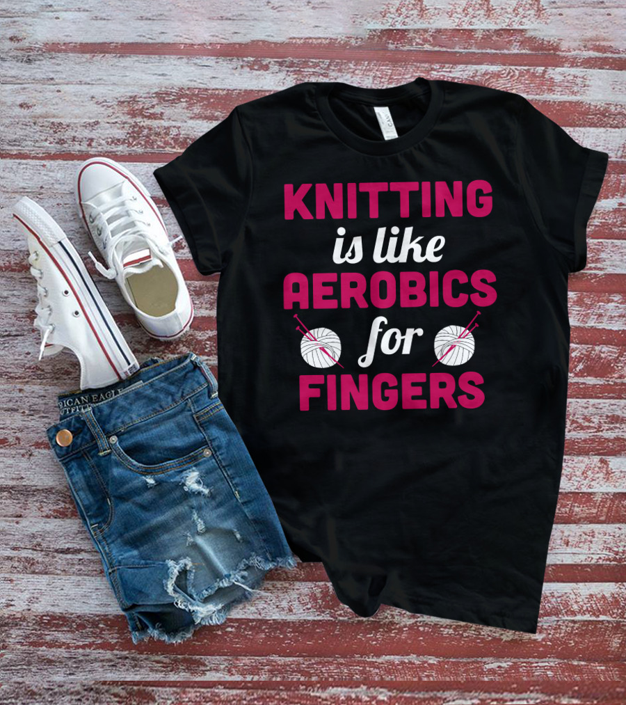 The Knitting is Like Aerobics for Fingers with Yarn and Needles Shirt offers a regular fit. Made from 100% ring-spun cotton that is pre-shrunk to help maintain size and shape after washing. Features reinforced construction details for durability. Available in U.S. standard sizes S-5XL to accommodate various body types.