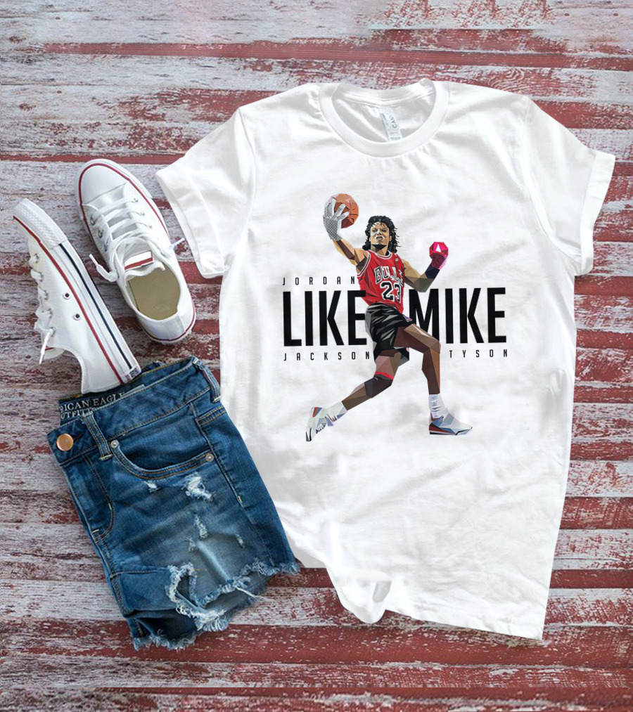 The Jordan Like Mike Jackson Tyson Bulls 23 Shirt offers a regular fit. Made from 100% ring-spun cotton that is pre-shrunk to help maintain size and shape after washing. Features reinforced construction details for durability. Available in U.S. standard sizes S-5XL to accommodate various body types.