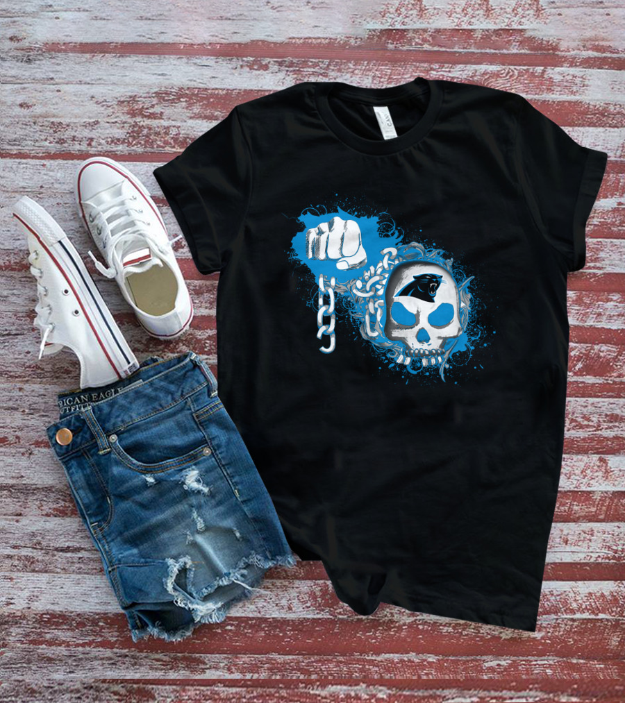 Carolina Panthers Skull And Chains Blue Fist T-Shirt