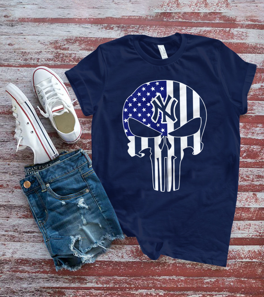 Yankees Logo American Flag Punisher Skull 1 T-Shirt