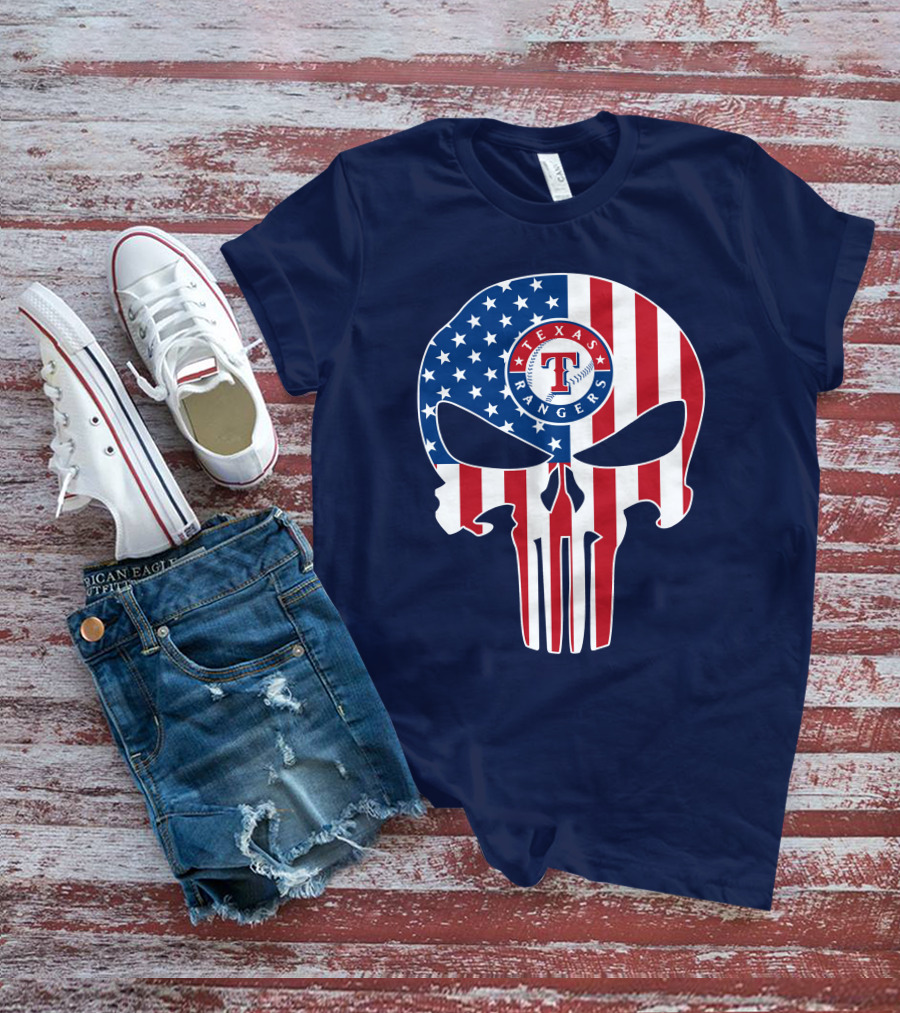 Texas Rangers Punisher Skull American Flag T-Shirt