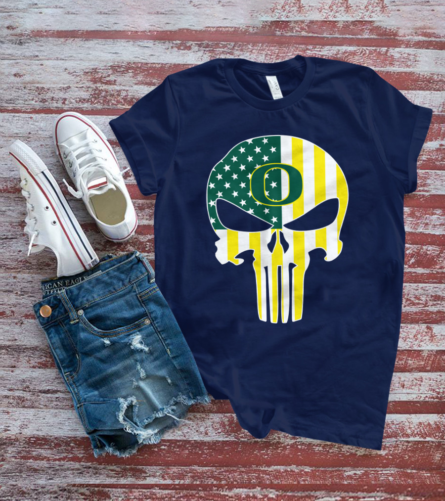Oregon Ducks Punisher Skull American Flag T-Shirt