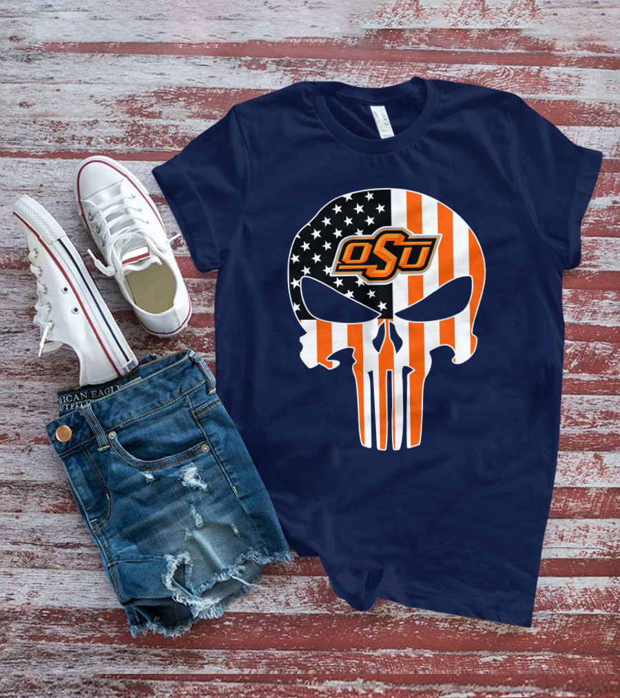 Oklahoma State Cowboys 32 Punisher Skull Osu American Flag T-Shirt