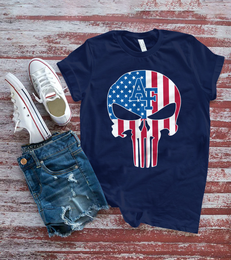Af 65 Air Force Falcons American Flag Punisher Skull T-Shirt
