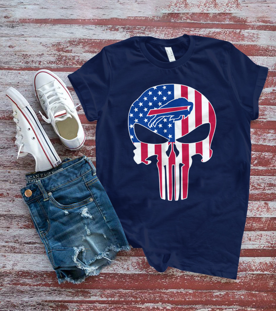 Buffalo Bills The Punisher Skull American Flag Logo Patriotic Sports Fan T-Shirt