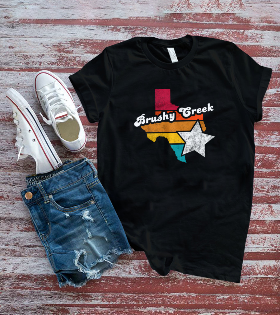 Brushy Creek Texas Retro Texas Map With Star T-Shirt