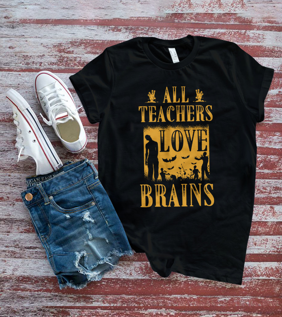 The All Teachers Love Brains Zombie Silhouette Bats and Graveyard Shirt offers a regular fit. Made from 100% ring-spun cotton that is pre-shrunk to help maintain size and shape after washing. Features reinforced construction details for durability. Available in U.S. standard sizes S-5XL to accommodate various body types.