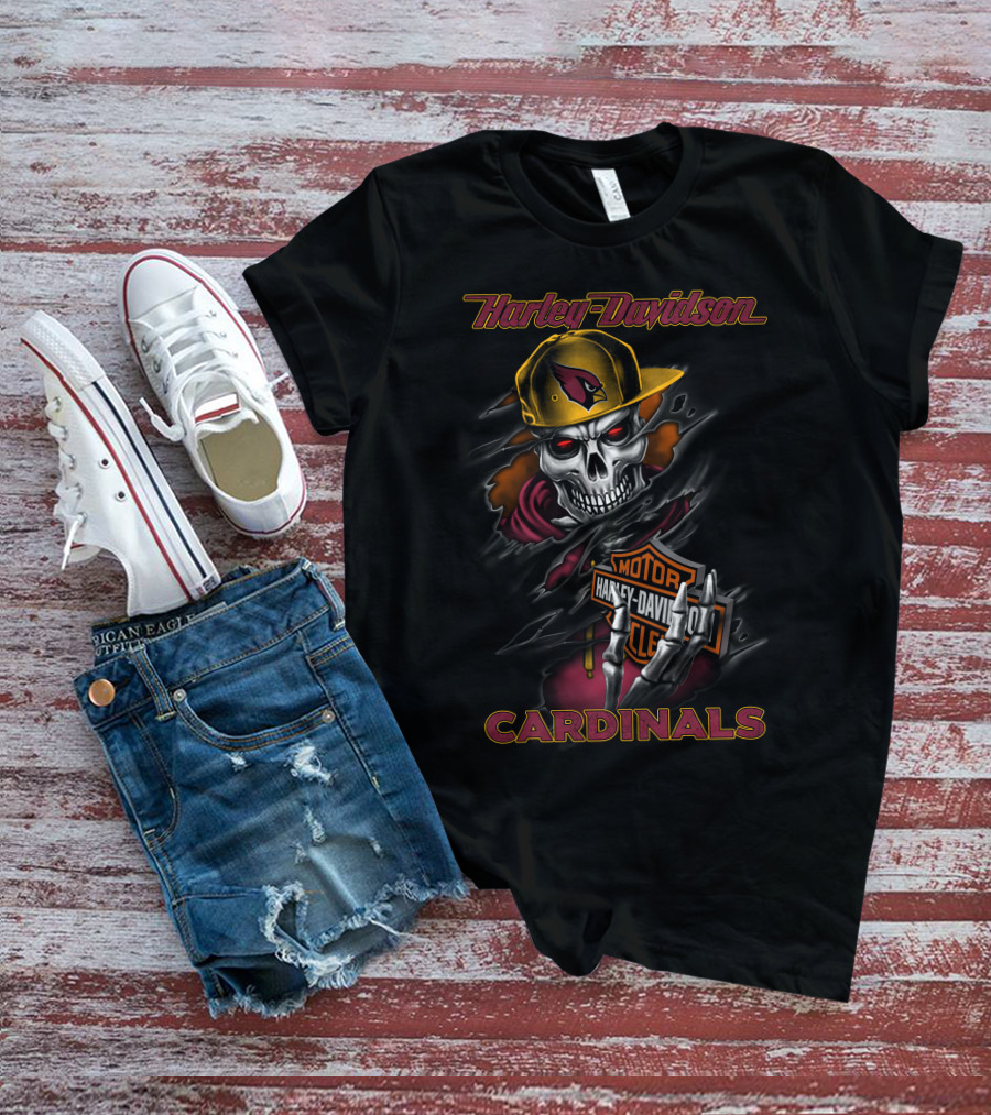 Harley Davidson Cardinals Skull In Cap With Motorcycles T-Shirt