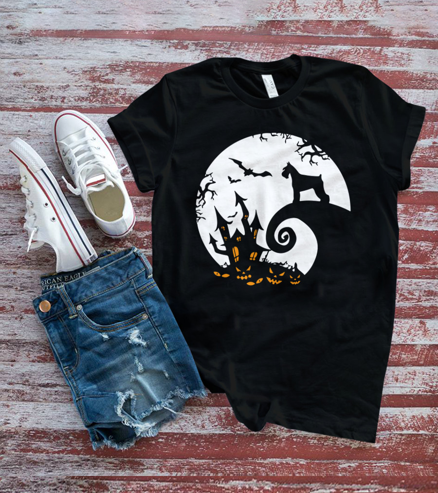 Funny Miniature Schnauzer And Moon Jack-O'-Lantern Halloween Night T-Shirt