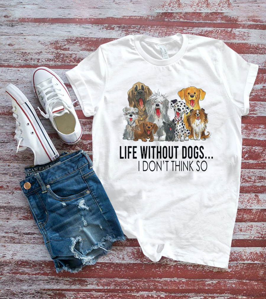 The Life Without Dogs I Don't Think So Shirt offers a regular fit. Made from 100% ring-spun cotton that is pre-shrunk to help maintain size and shape after washing. Features reinforced construction details for durability. Available in U.S. standard sizes S-5XL to accommodate various body types.