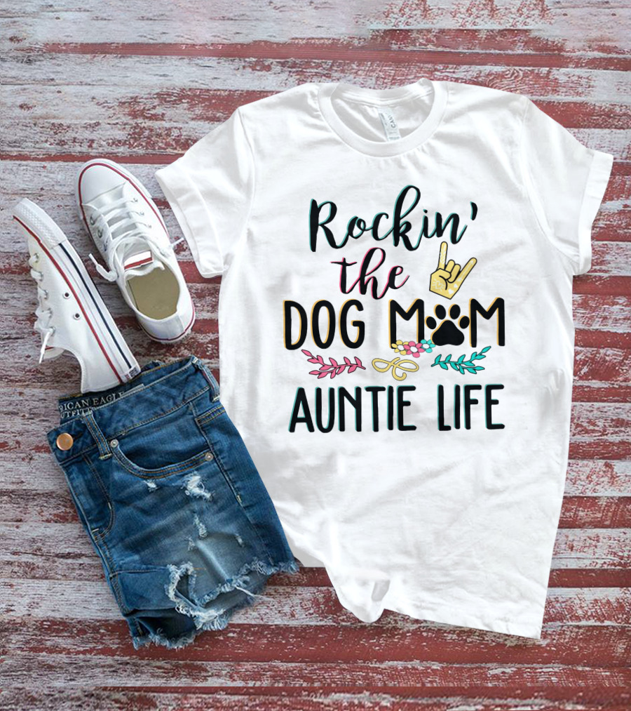 Rockin The Dog Mom Auntie Life With Paw Print Rock T-Shirt