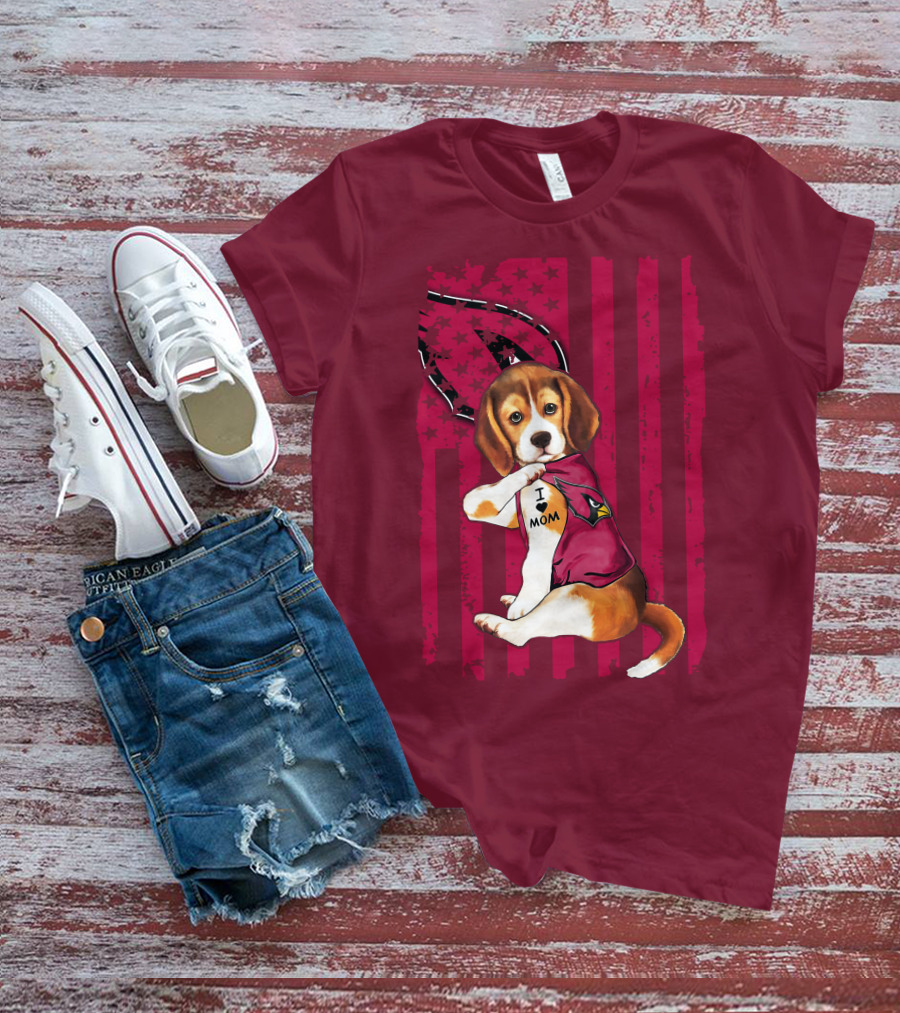 Beagle I Love Mom Arizona Cardinals USA Flag Stars T-Shirt
