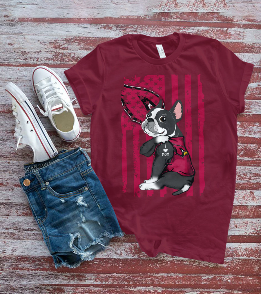 Boston Terrier I Love Mom Arizona Cardinals Football Fan T-Shirt