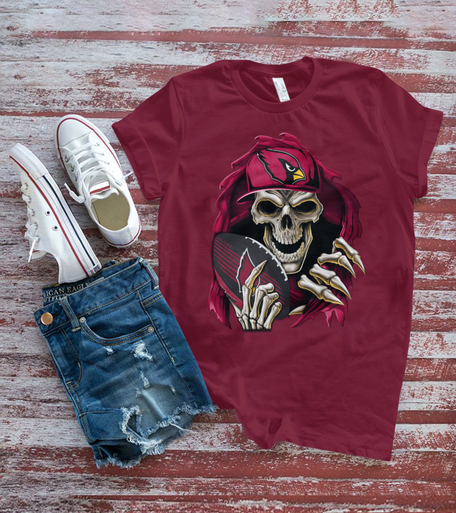 The Arizona Cardinals Skull Holding Football Shirt offers a regular fit. Made from 100% ring-spun cotton that is pre-shrunk to help maintain size and shape after washing. Features reinforced construction details for durability. Available in U.S. standard sizes S-5XL to accommodate various body types.