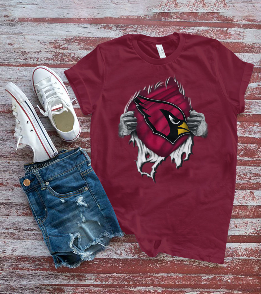 Torn Arizona Cardinals Emblem Revealed By Hands T-Shirt