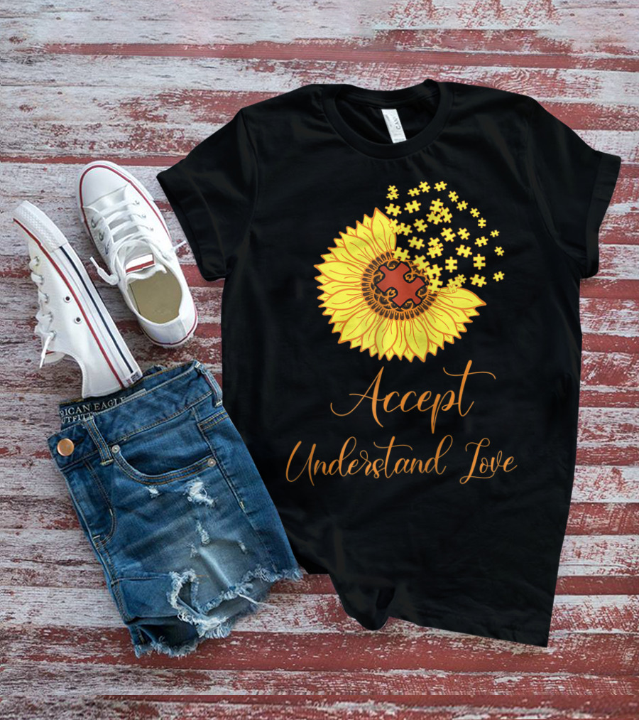 Sunflower Autism Awareness Month Accept Understand Love Puzzle Piece T-Shirt