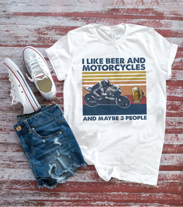 I Like Beer And Motorcycles Vintage Style With Beer Mug And Racer T-Shirt
