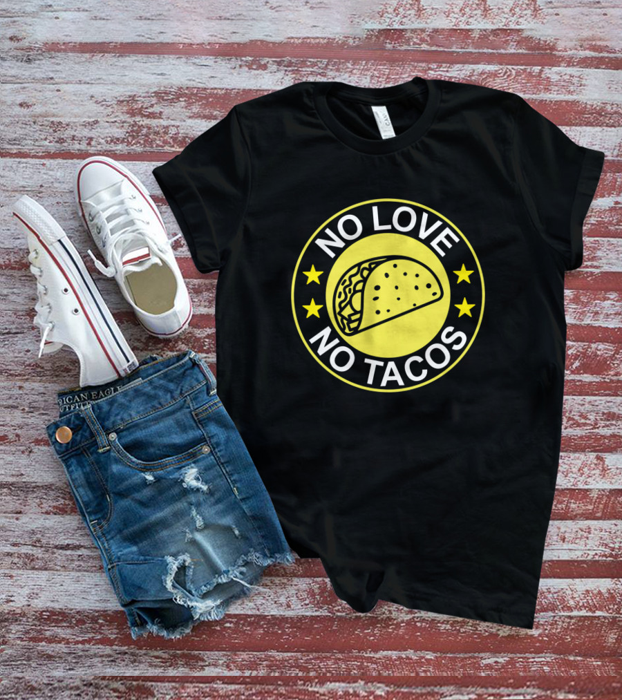 The No Love No Tacos Taco Circle Stars Shirt offers a regular fit. Made from 100% ring-spun cotton that is pre-shrunk to help maintain size and shape after washing. Features reinforced construction details for durability. Available in U.S. standard sizes S-5XL to accommodate various body types.
