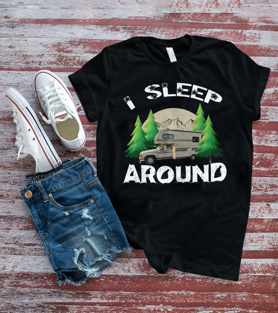 I Sleep Around RV Camper Mountains And Trees T-Shirt