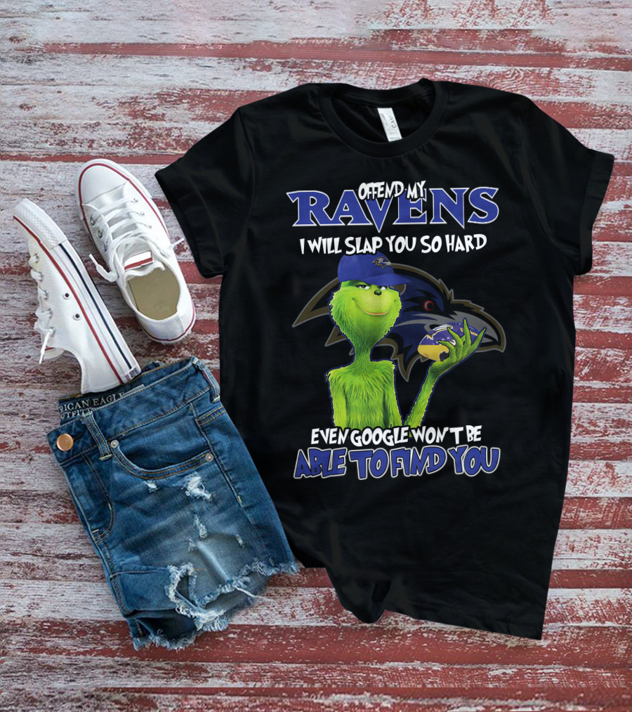 Offend My Ravens I Will Slap You So Hard Even Google Won't Be Able To Find You Grinch Ravens T-Shirt
