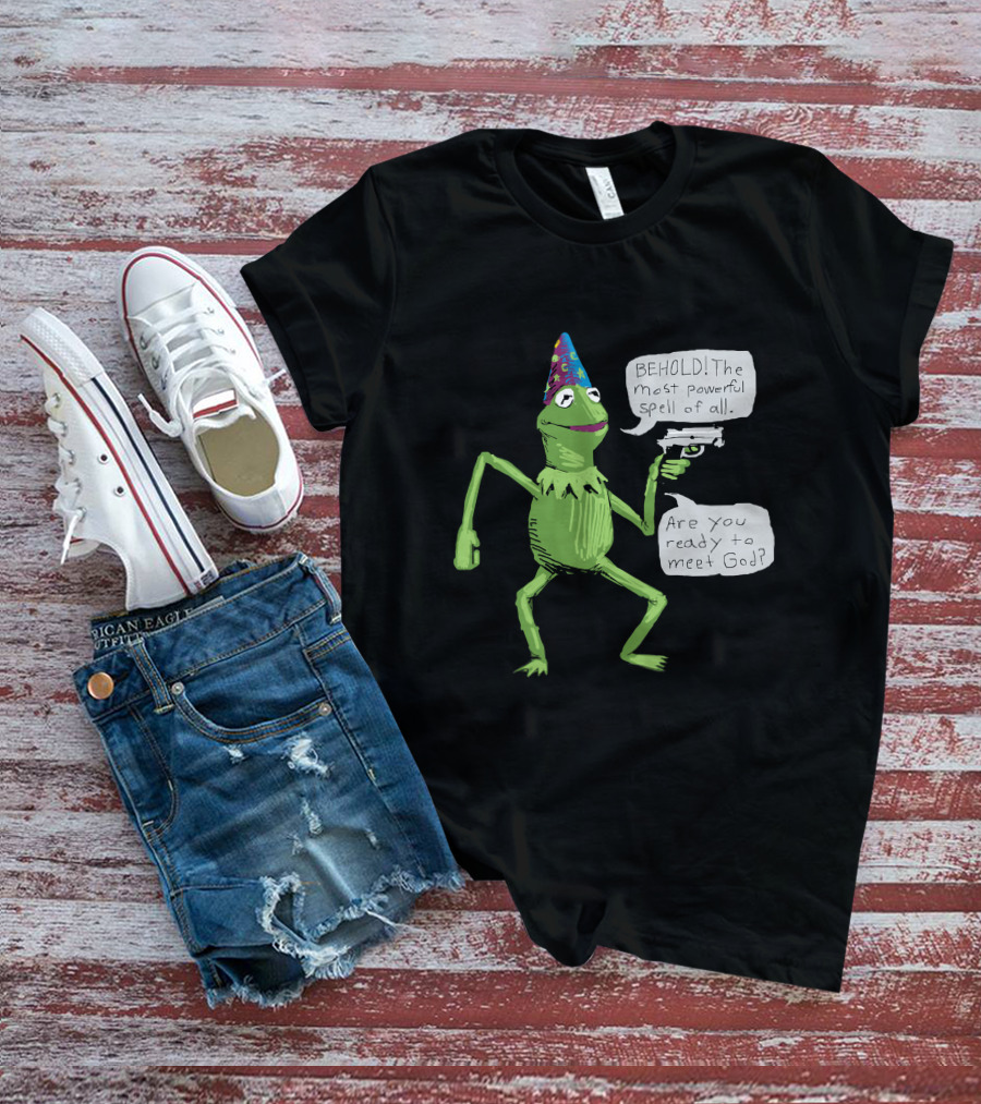 Yer A Wizard Behold The Most Powerful Spell Of All Kermit Frog And Gun Meet God T-Shirt