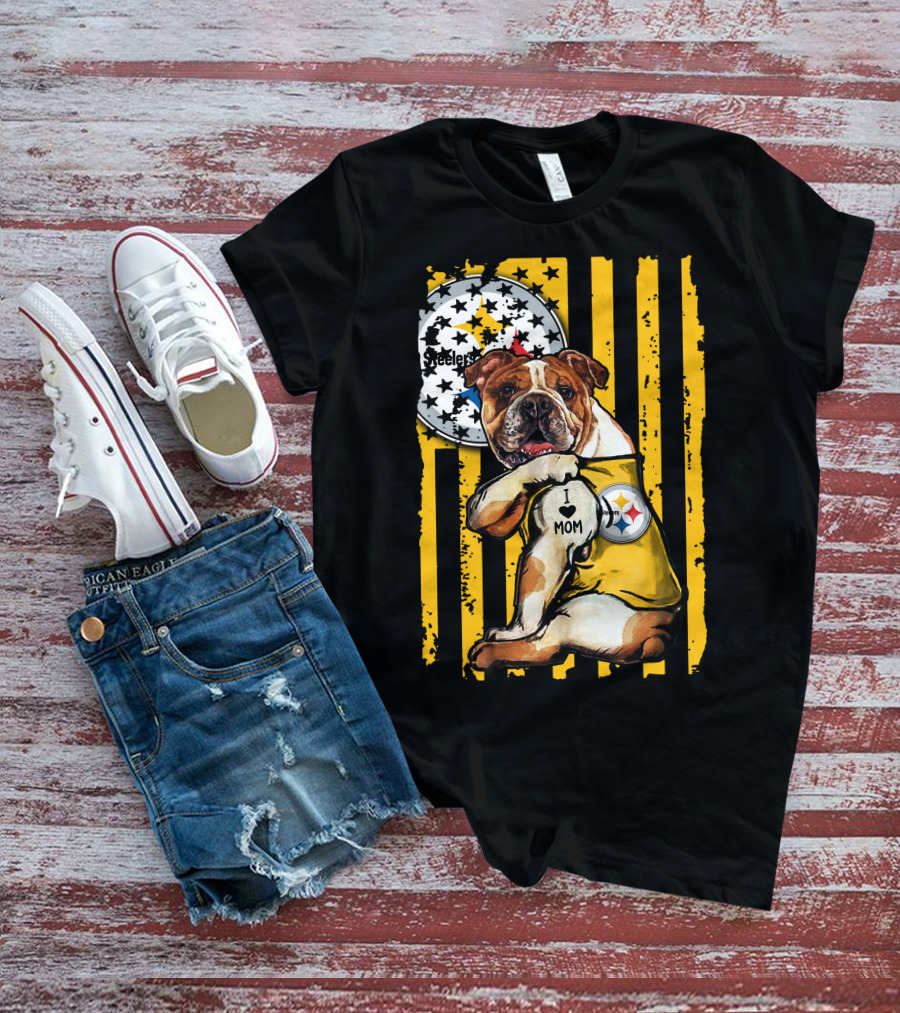 Pittsburgh Steelers Bulldog I Love Mom Stripes T-Shirt