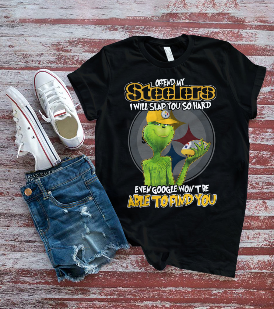 The Offend My Steelers Grinch V2 I Will Slap You So Hard Even Google Won't Be Able to Find You Shirt offers a regular fit. Made from 100% ring-spun cotton that is pre-shrunk to help maintain size and shape after washing. Features reinforced construction details for durability. Available in U.S. standard sizes S-5XL to accommodate various body types.
