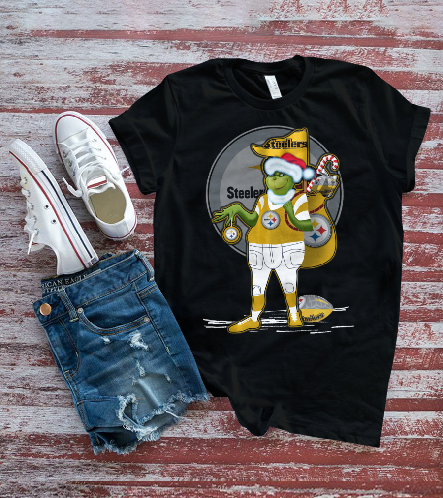 Grinchxmas Pittsburgh Steelers Santa Hat Candy Cane Football Holiday T-Shirt