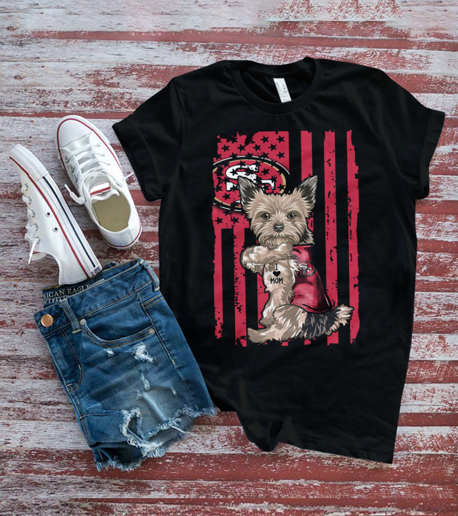 Yorkshire Terrier I Love Mom San Francisco 49ers Football Fan T-Shirt