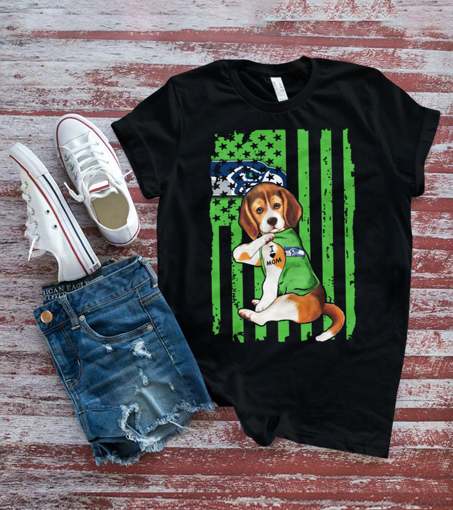 Seattle Seahawks Beagle With I Love Mom Tattoo T-Shirt