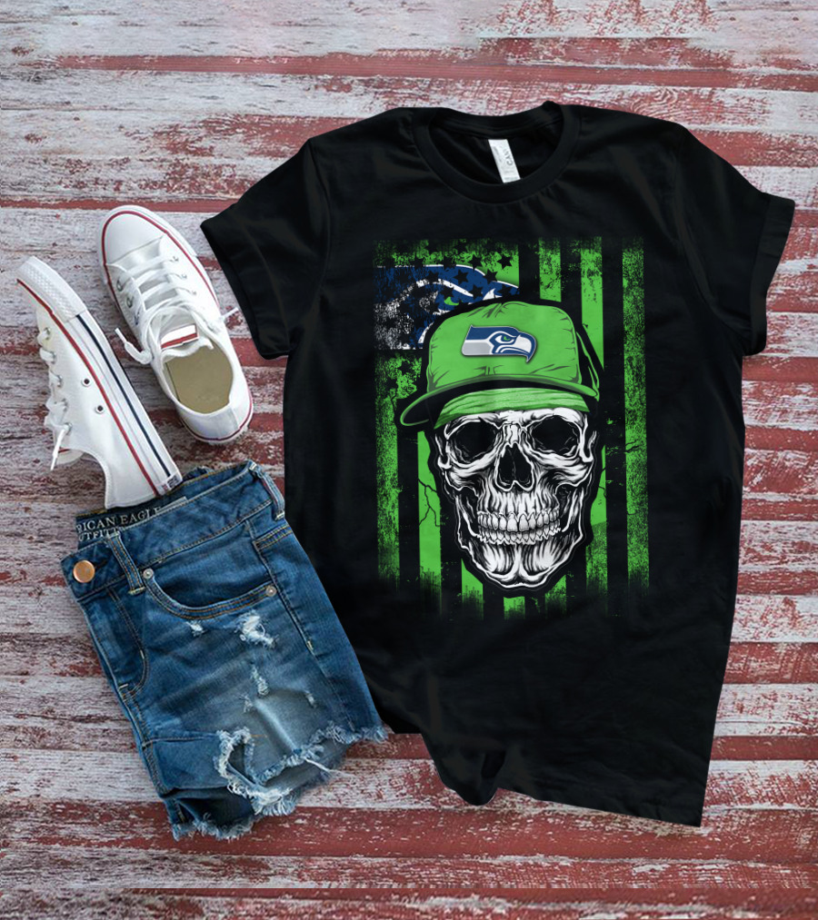 Skull In Seattle Seahawks Cap With Green Stripes And Team T-Shirt