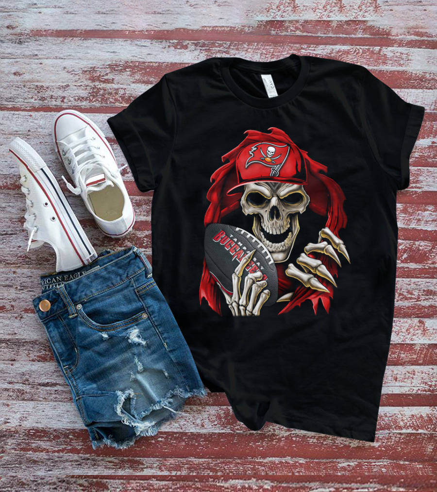 Skullbong Buccaneers Skeleton With Football And Red Cap T-Shirt