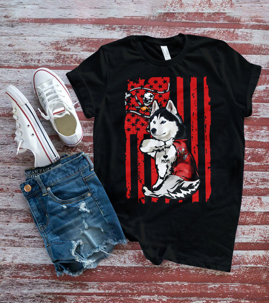 Siberian Husky Tampa Bay Buccaneers Heart Mom Flag T-Shirt