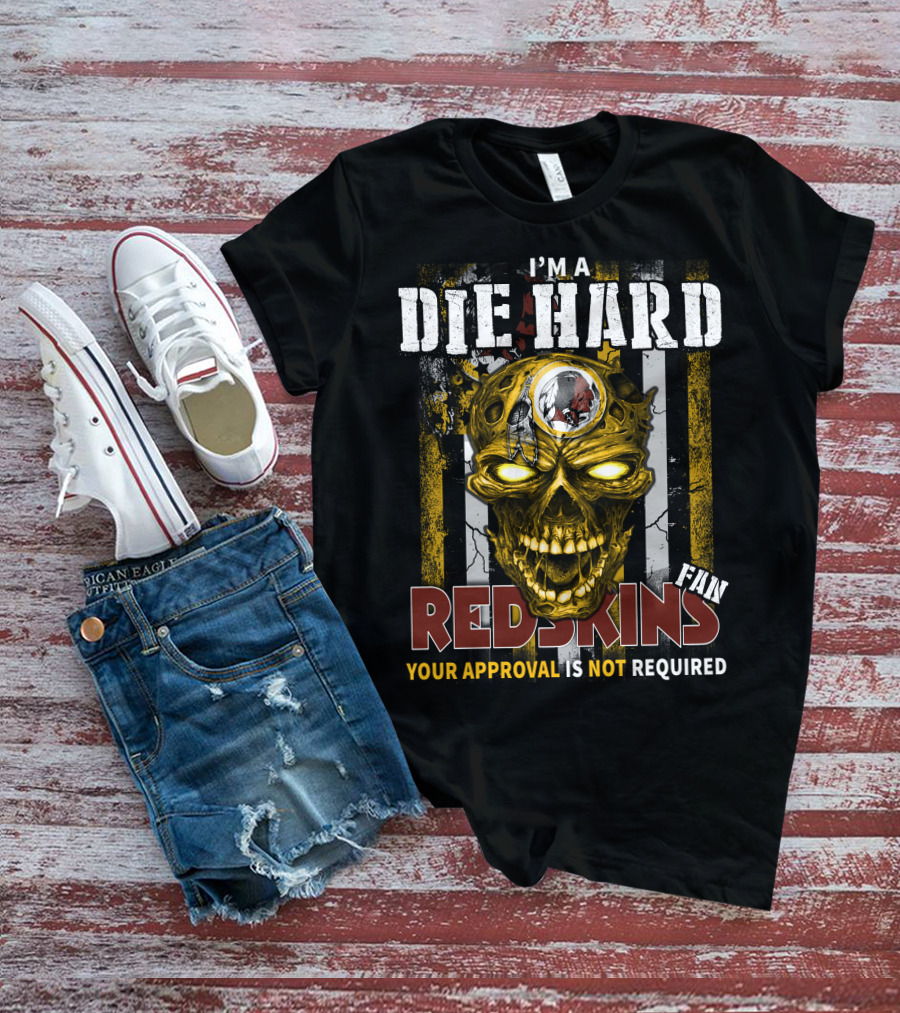 The I'm A Die Hard Redskins Fan Your Approval Is Not Required Shirt offers a regular fit. Made from 100% ring-spun cotton that is pre-shrunk to help maintain size and shape after washing. Features reinforced construction details for durability. Available in U.S. standard sizes S-5XL to accommodate various body types.