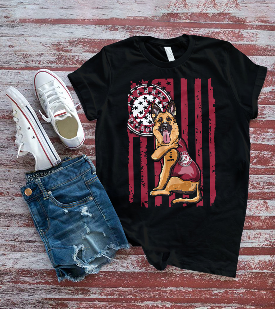 German Shepherd Alabama Crimson Tide Pride With I Love Mom Tattoo T-Shirt