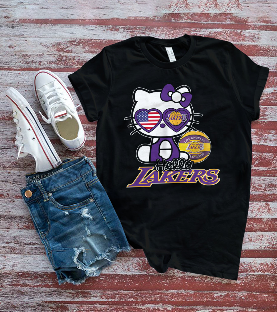 Hello Kitty Los Angeles Lakers USA Flag Basketball Fan T-Shirt