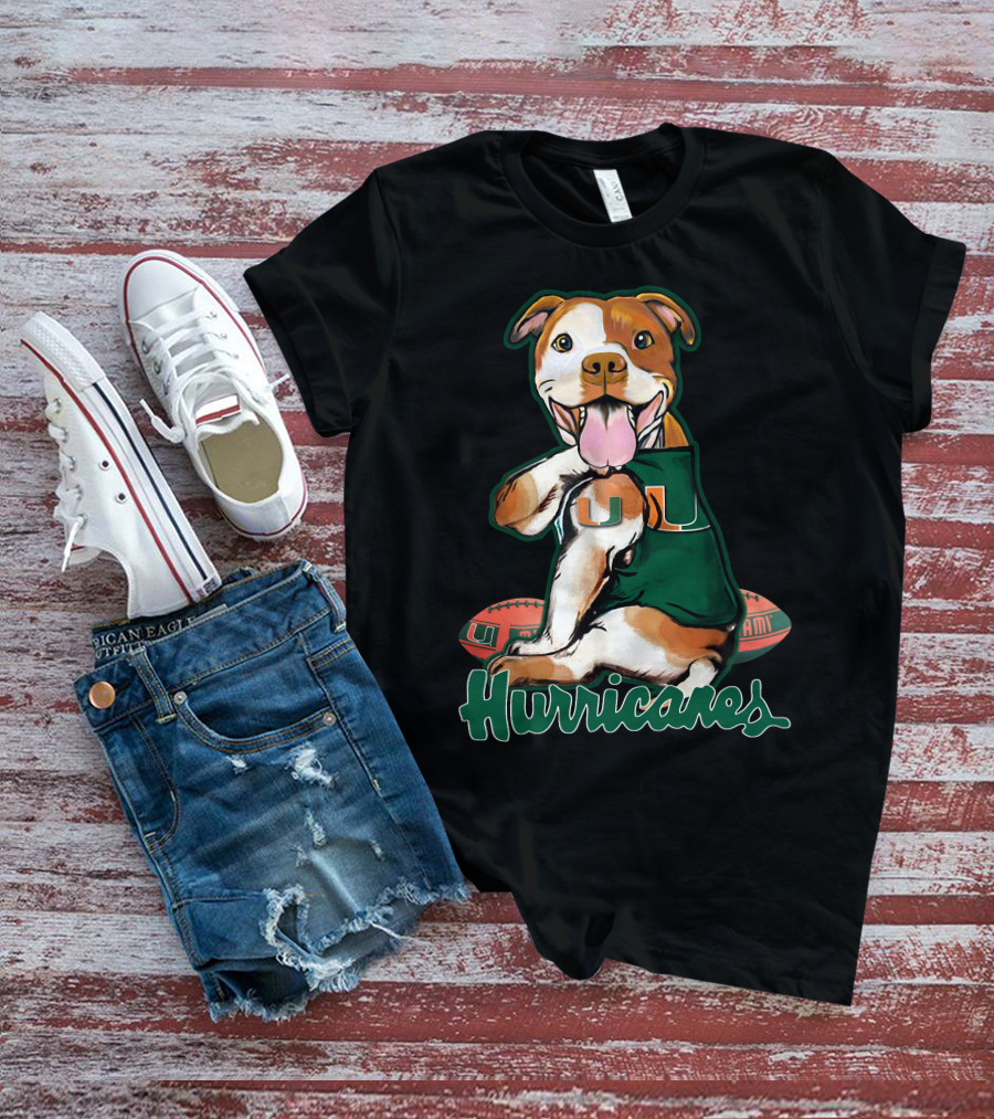 Pittbull Wearing Miami Hurricanes U Jersey With Football T-Shirt