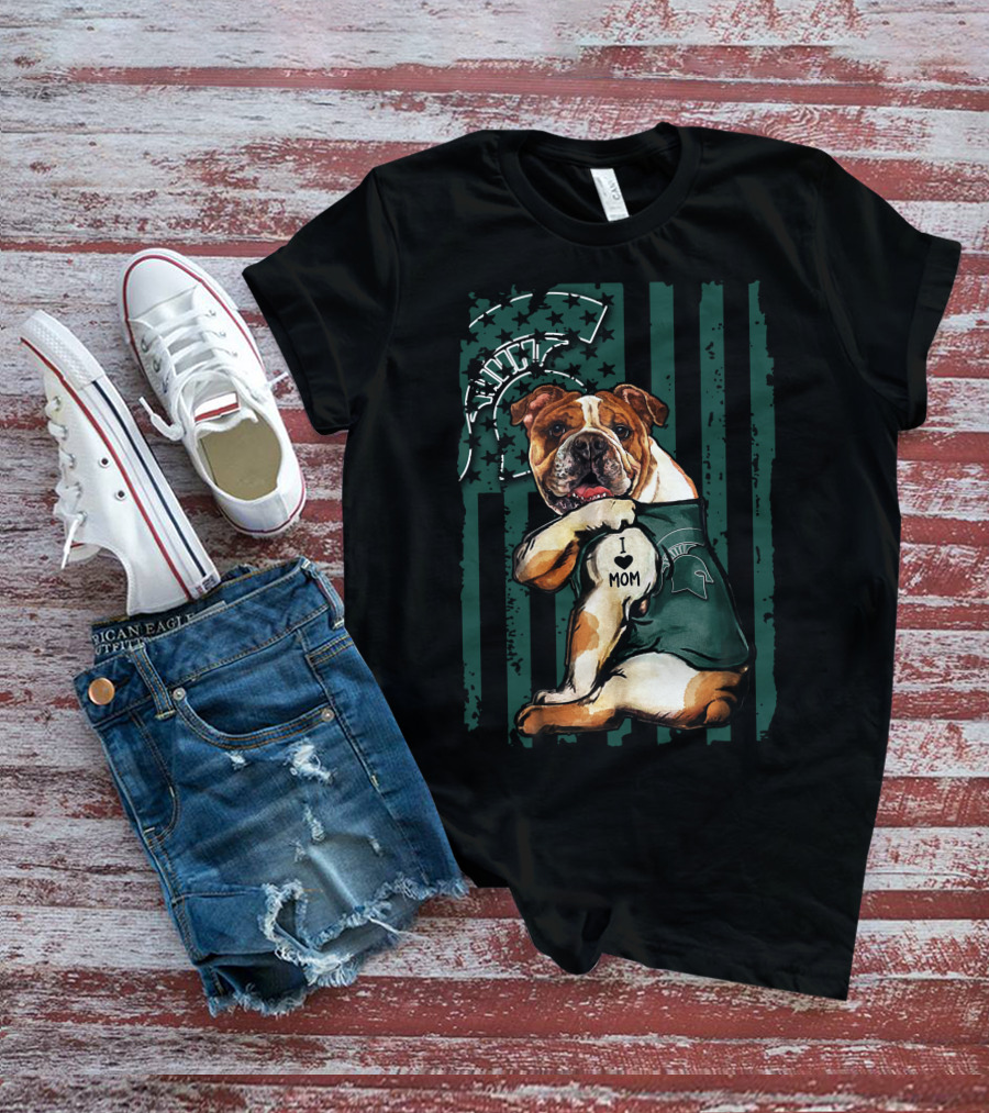 I Love Mom Michigan State Spartans Bulldog Wearing Team T-Shirt
