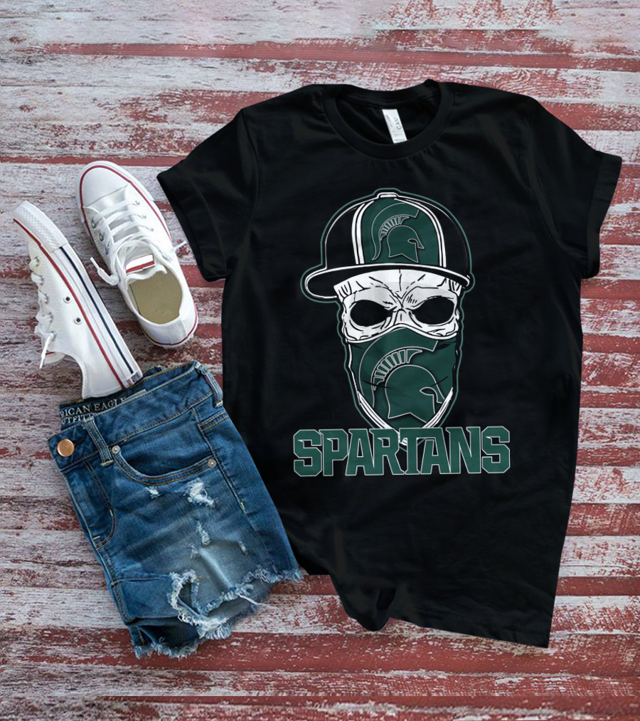 Skull Hat Michigan State Spartans Logo With Spartan Text T-Shirt