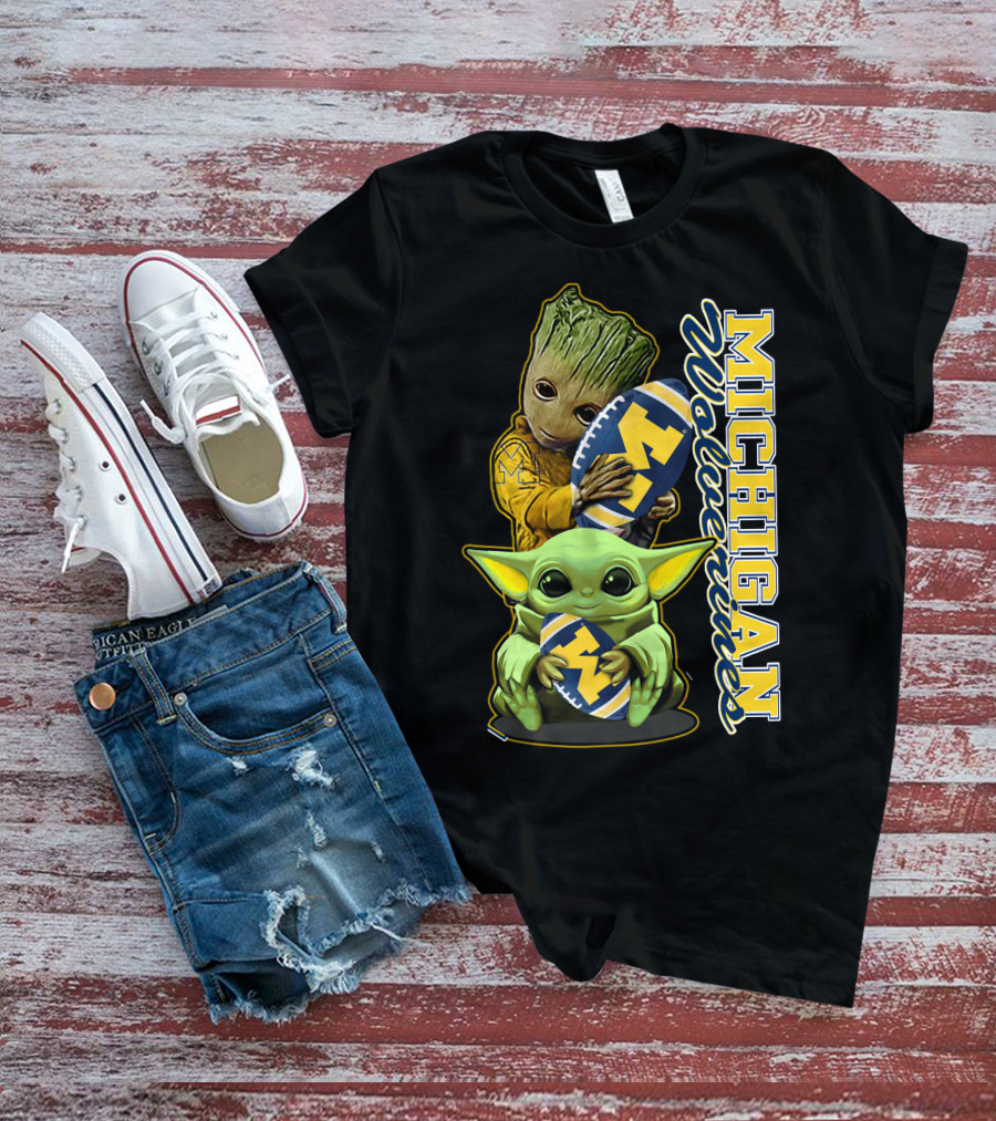 Michigan Wolverines Grogu And Groot Football T-Shirt