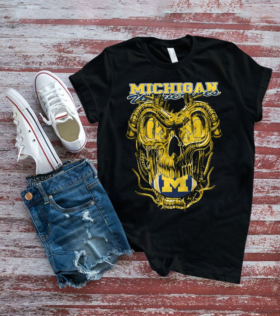 Dragonskull Michigan Wolverines M Football Skull T-Shirt