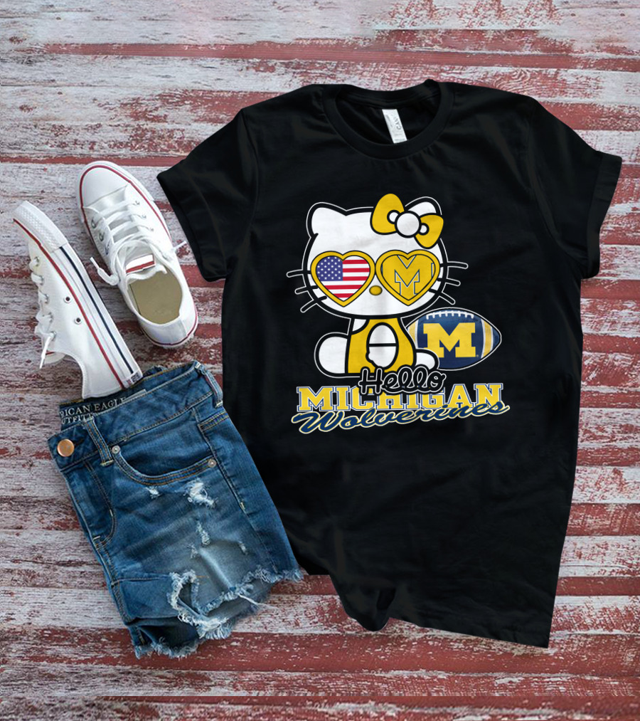 Hello Kitty Michigan Wolverines American Flag Football T-Shirt