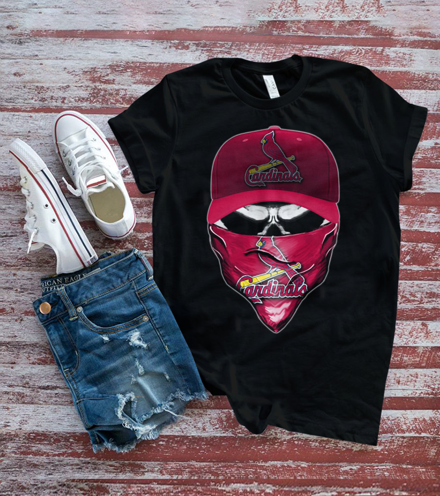 Skull With St. Louis Cardinals Cap And Bandana T-Shirt