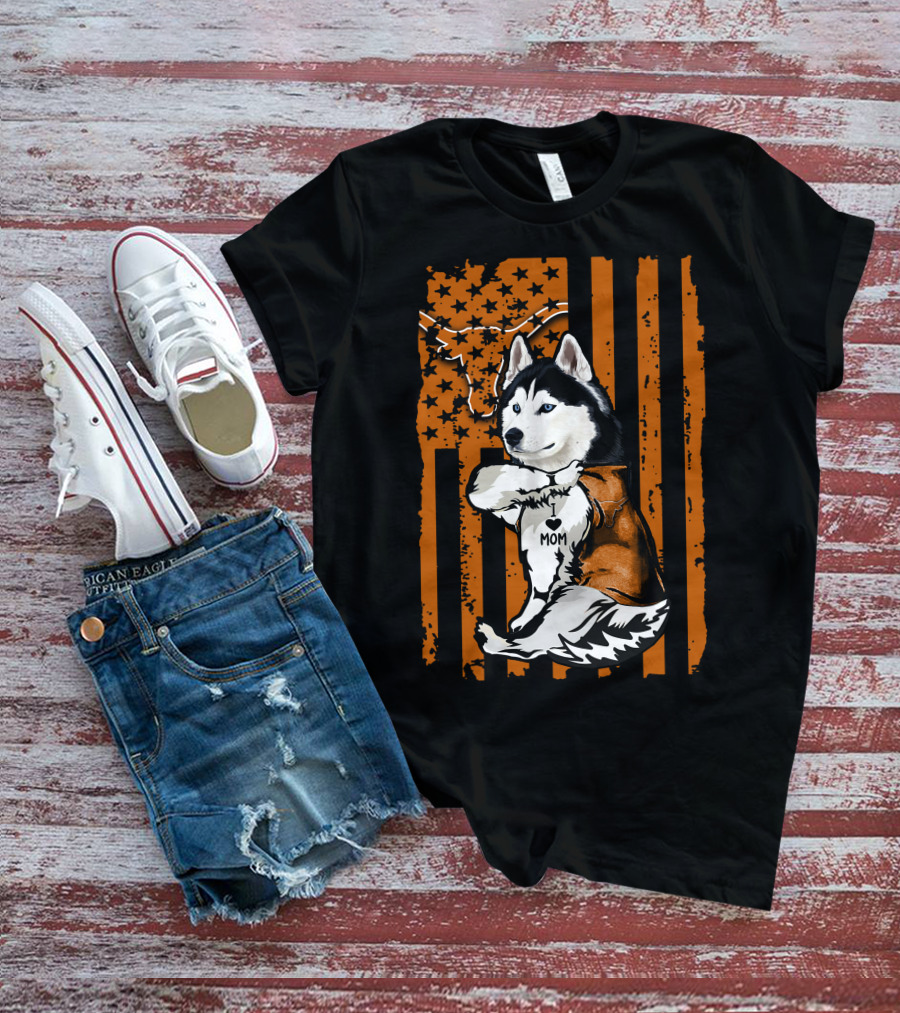 Siberian Husky Mom Texas Longhorns Flag Stars T-Shirt