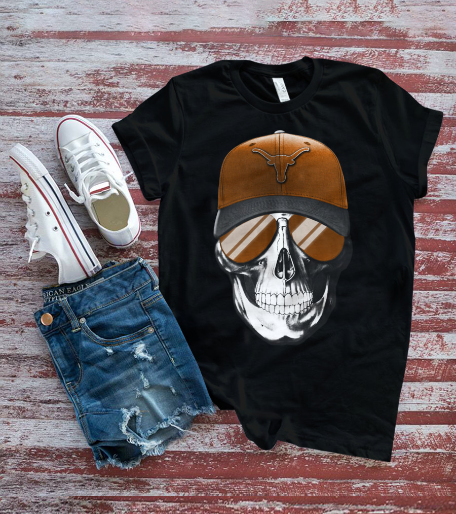 Skull With Texas Longhorns Cap And Sunglasses T-Shirt