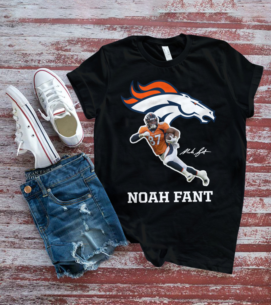 Noah Fant Broncos 87 Football Signature T-Shirt