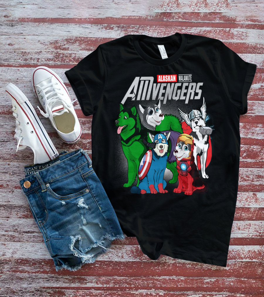 Alaskan Malamute AMvengers Superhero Dogs Assemble T-Shirt