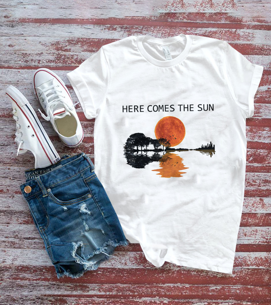 Here Comes The Sun Guitar Shadow Sunset Tree Reflection T-Shirt