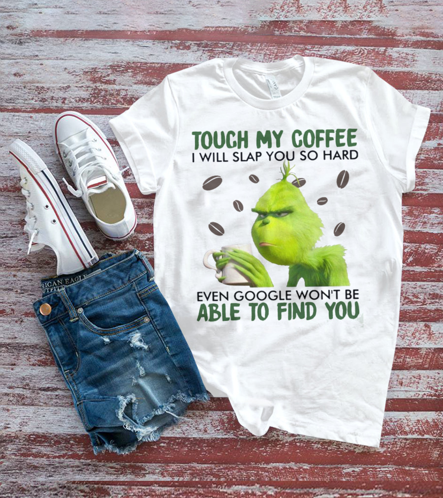 Touch My Coffee I Will Slap You So Hard Even Google Won't Be Able To Find You Grumpy Green Character With Coffee Beans T-Shirt