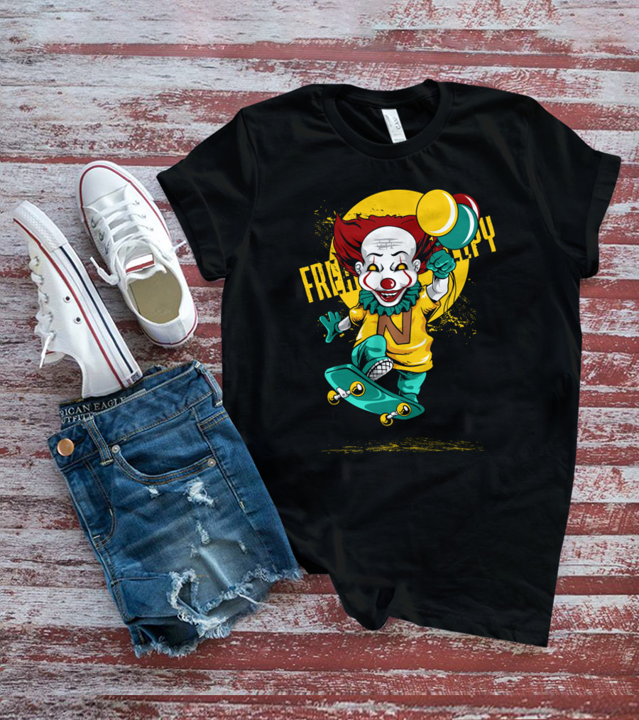 The Freaky Clown Skateboarding with Mallet and Letter N Shirt offers a regular fit. Made from 100% ring-spun cotton that is pre-shrunk to help maintain size and shape after washing. Features reinforced construction details for durability. Available in U.S. standard sizes S-5XL to accommodate various body types.